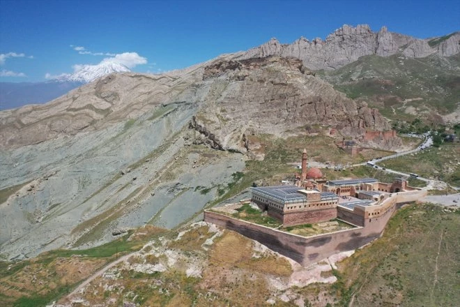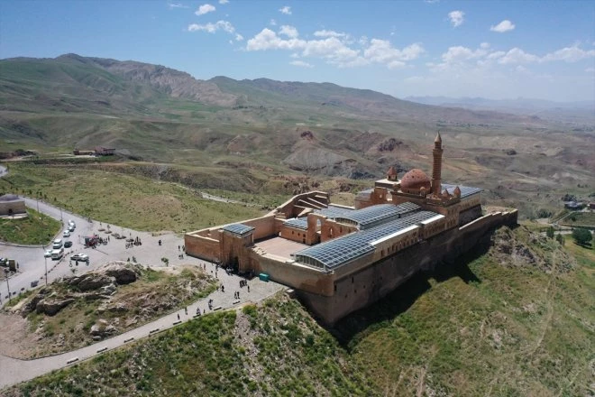 Doğubayazıt ilçesinde Lale Devri'nde inşa edilen en önemli eserler arasında yer alan tarihi İshak Paşa Sarayı, 9 günlük Kurban Bayramı tatilinde yurdun farklı bölgelerinden gelen ziyaretçileri ağırlıyor.