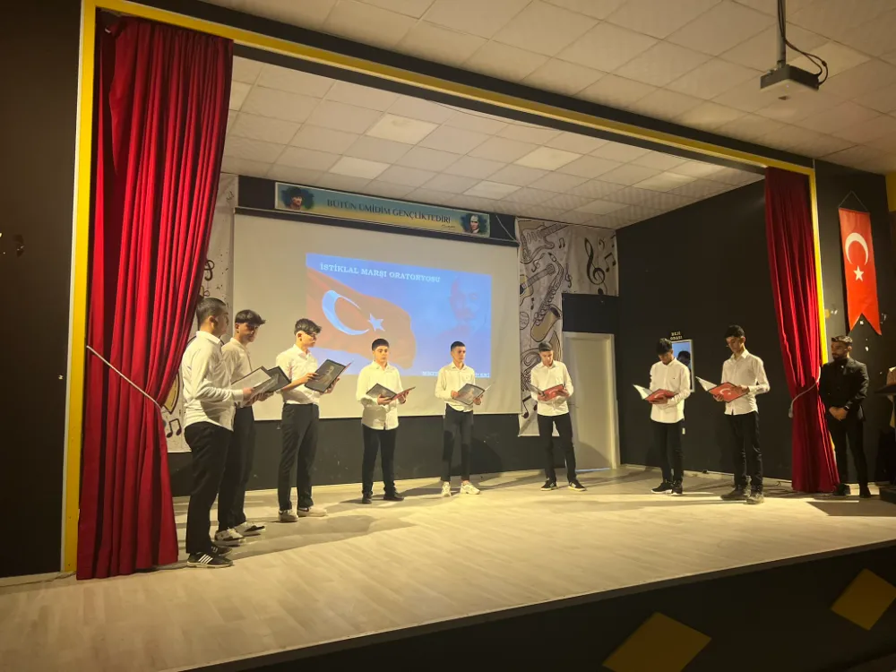 Kaymakam Sayın Murat Ekinci'nin katılımıyla, İlçe Milli Eğitim Müdürlüğü konferans salonunda "12 Mart İstiklal Marşı'nın Kabulü ve Mehmet Akif Ersoy'u Anma Günü" dolayısıyla tören düzenlendi.