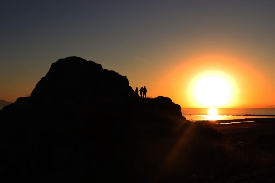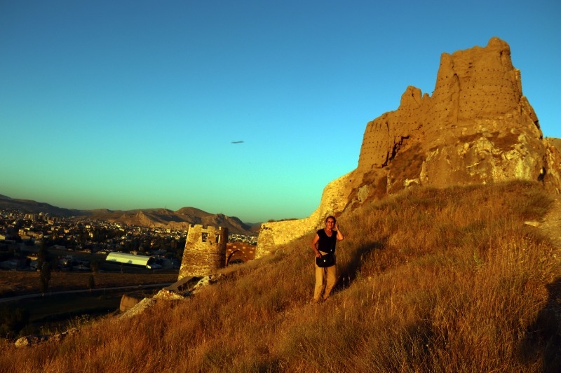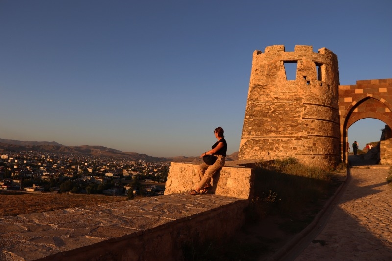 Akşam saatlerinde de Van Kalesi'ne çıkan turistler, Van Gölü üzerinde güneşin batışını izleyerek fotoğraf çektirdi.