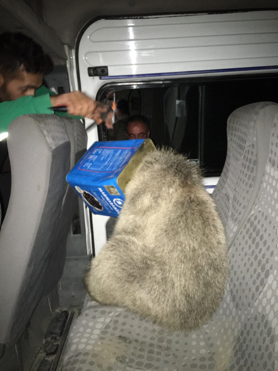 Kafası kutuya sıkışan ayı yavrusunu Doğubayazıt itfaiye ekipleri kurtardı
