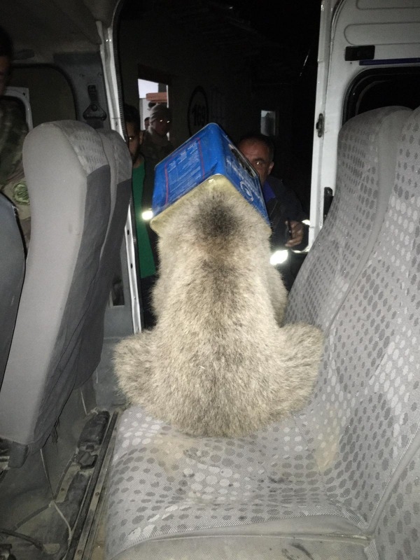 Olay yerine gelen Doğubayazıt Belediyesi İtfaiye Müdürlüğü ekipleri, Ayı yavrusunu uyuşturucu iğnelerle sakinleştirildi. Daha sonra teneke kutu kesilerek kurtarılan hayvan doğaya sanıldı.