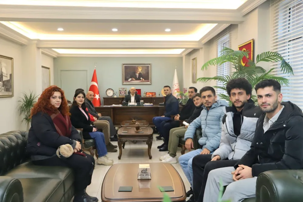 Kaymakam Murat Ekinci, Ahmedi Hani Meslek Yüksekokulu Kızılay Kulübü gönüllüleri arasında düzenlenen voleybol turnuvasında finale kalan takımları makamında kabul ederek, başarı gösteren finalist gönüllülere hediyeler takdim edip kendilerini tebrik etti.