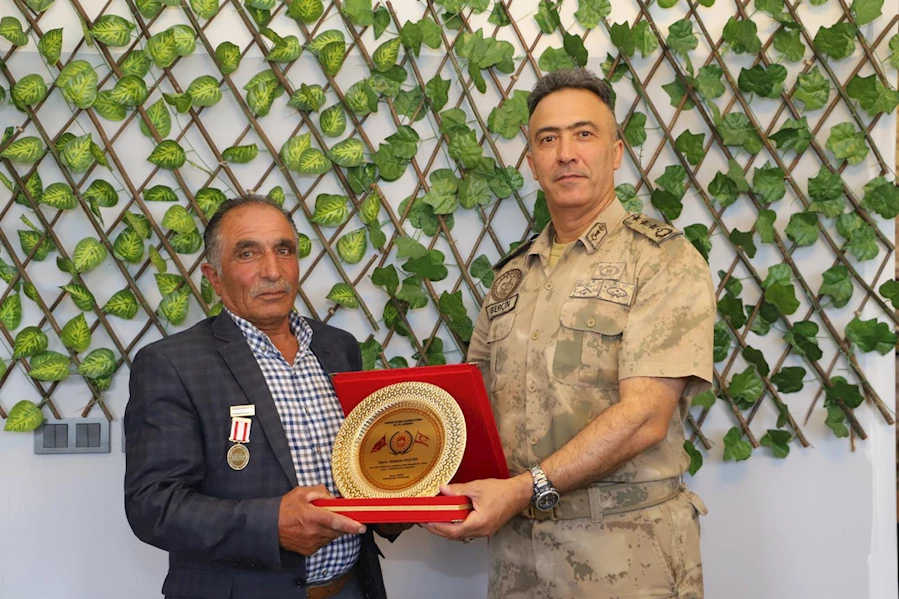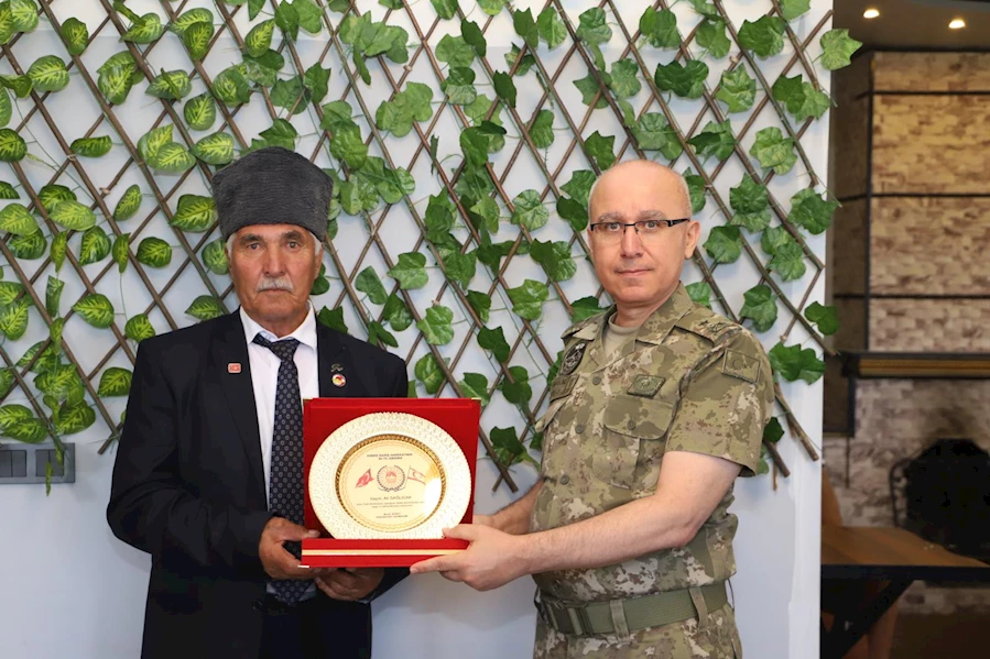 Kaymakamım Ekinci, yemeğe katılan Kıbrıs Gazilerine Kıbrıs Barış Harekatı'nın 50. yıl dönümünün anısına plaket takdim edilmesinin ardından Türkiye Muharip Gaziler Derneği Doğubayazıt Temsilciliği Başkanı Resul İlhan, Kaymakam ve Tugay Komutanına Teşekkür etti.