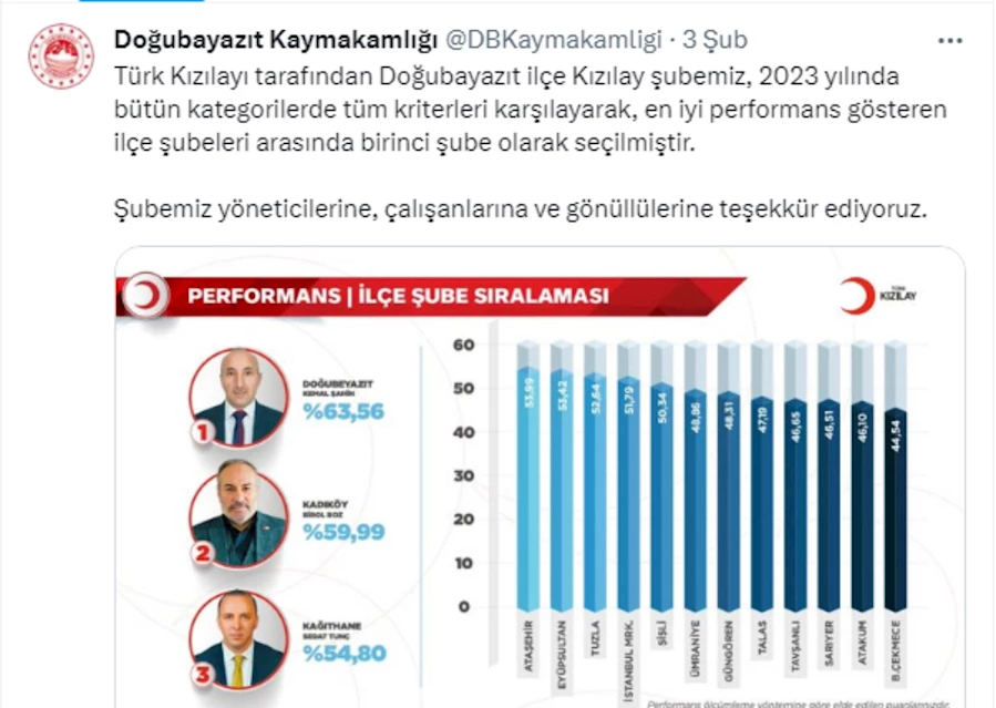 6 Şubat Depreminde ve ilçe genelinde yaptığı özverili çalışmalarıyla halk tarafından da takdirle karşılanan Kızılay Doğubayazıt Şubesi Başkanı Kemal Şahin ve değerli çalışanlarını tebrik ediyor ve nice hayırlı işlerinin devamını diliyoruz.