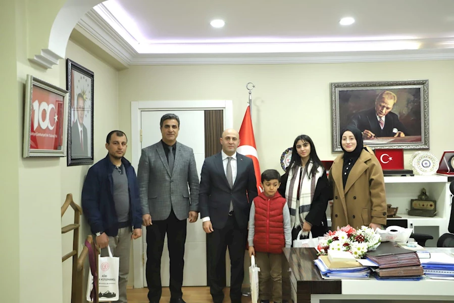 Kaymakam Sayın Murat Ekinci, Kütüphane Haftası dolayısıyla kendisini ziyaret eden İlçe Halk Kütüphanesi Müdürü Seyfettin Sülkü ve kütüphane üyesi kitapseverleri makamında kabul etti. Ekinci, tüm kitap tutkunlarının Kütüphane Haftası'nı kutladı.