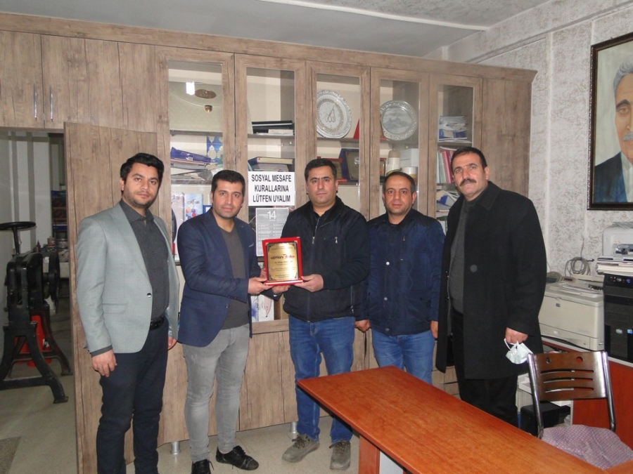 Kurum yöneticilerinden Eğitimci Ömer Köroğlu ve Ömer Öztürk yaptıkları ziyarette Gazetemiz Yazı İşleri Müdürü Erhan Baydar'a Plaket takdim ettiler.