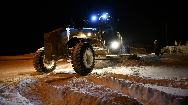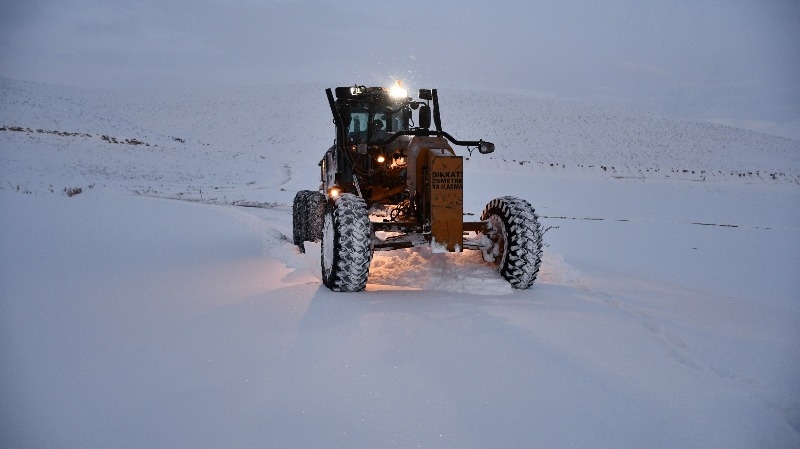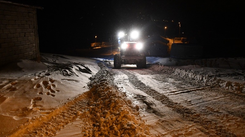 Kar ve tipinin etkili olduğu bölgede 4 saat boyunca iş makineleriyle çalışan ekipler, kar kalınlığının bir metreyi aştığı köy yollarını ulaşıma açtı.