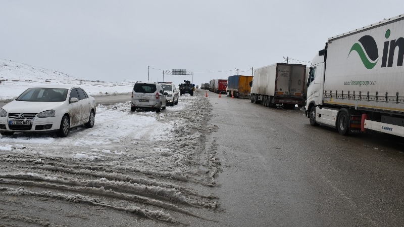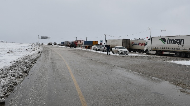 Tipi nedeniyle görüş mesafesinin 20 metreye kadar düştüğü geçitte ağır tonajlı bazı araçların yolda kaldığı öğrenildi.