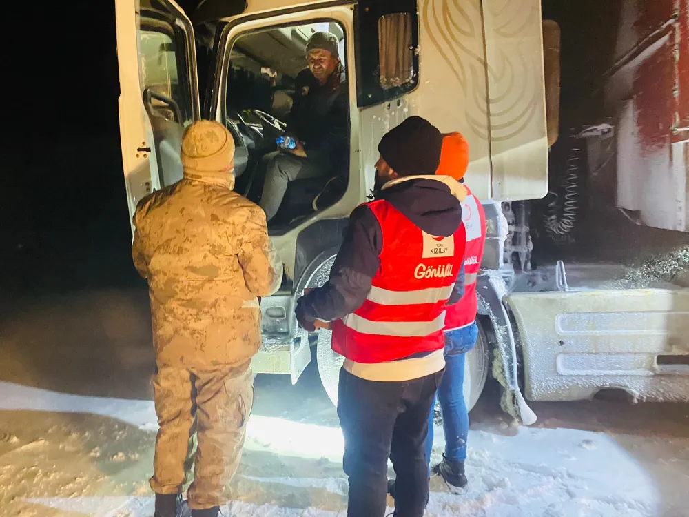 Türk Kızılay Doğubayazıt Şubesi gönüllülerince trafiğe kapatılan kara yolundaki tır sürücülerine kumanya verildi.