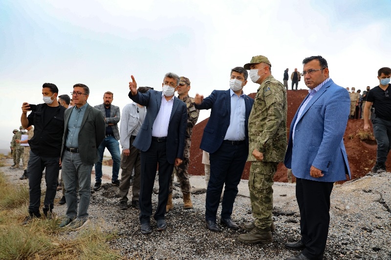 Van ve Ağrı ilerinde Türkiye-İran sınırına inşa edilen modüler beton duvarı çalışmalarını inceleyen Bilmez, Kırbıyık ve beraberindekiler, sınır hattındaki güvenlik önlemleri hakkında bilgi aldı.