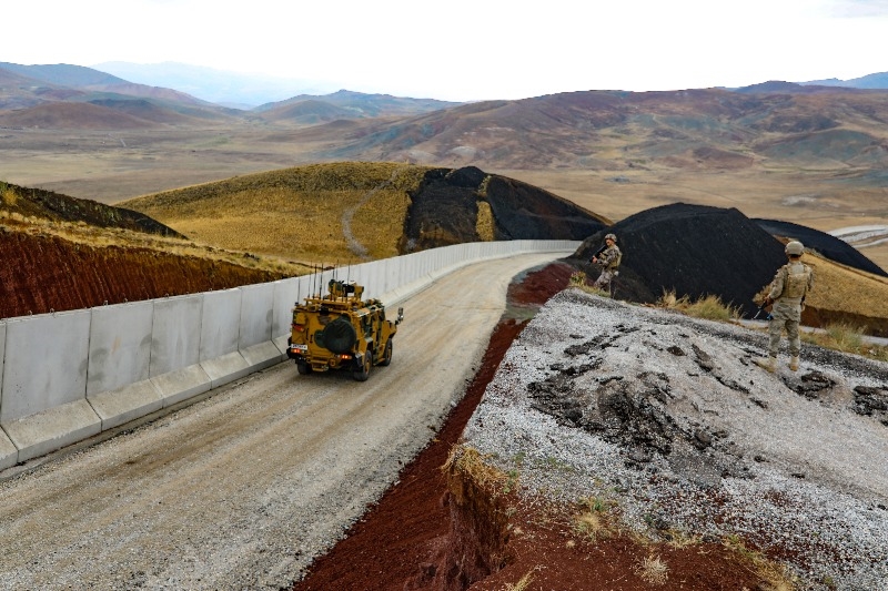 Bölgede ilave 2 hudut karakolunun yapımının devam ettiğini belirten Ertuğrul, "Bölgede elektro optik kule çalışmaları devam ediyor. 58 gözetleme, 45 haberleşme kulesinin alt ve üst yapı çalışmaları tamamlandı ve test aşamasına gelindi. Bölgede 64 kilometrelik kısımda 3 etap halinde modüler beton duvarı çalışması yapılıyor. İkinci etabın 6 kilometrelik bölümünde duvar çalışması tamamlandı. Üçüncü etapta da yaklaşık 200 metrelik duvar çalışması başladı. Birinci etapta da mayın temizleme çalışmalarına müteakip duvar çalışmaları başlayacak. Kritik bölgelerde duvar, hendek, jiletli tel çekimine ağırlıklı olarak devam ediliyor." şeklinde konuştu.